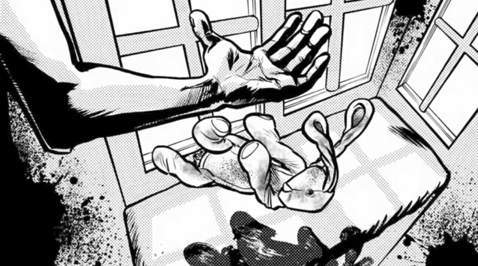 床一面にどう見ても血だまりの様にしか見えない大きな染み